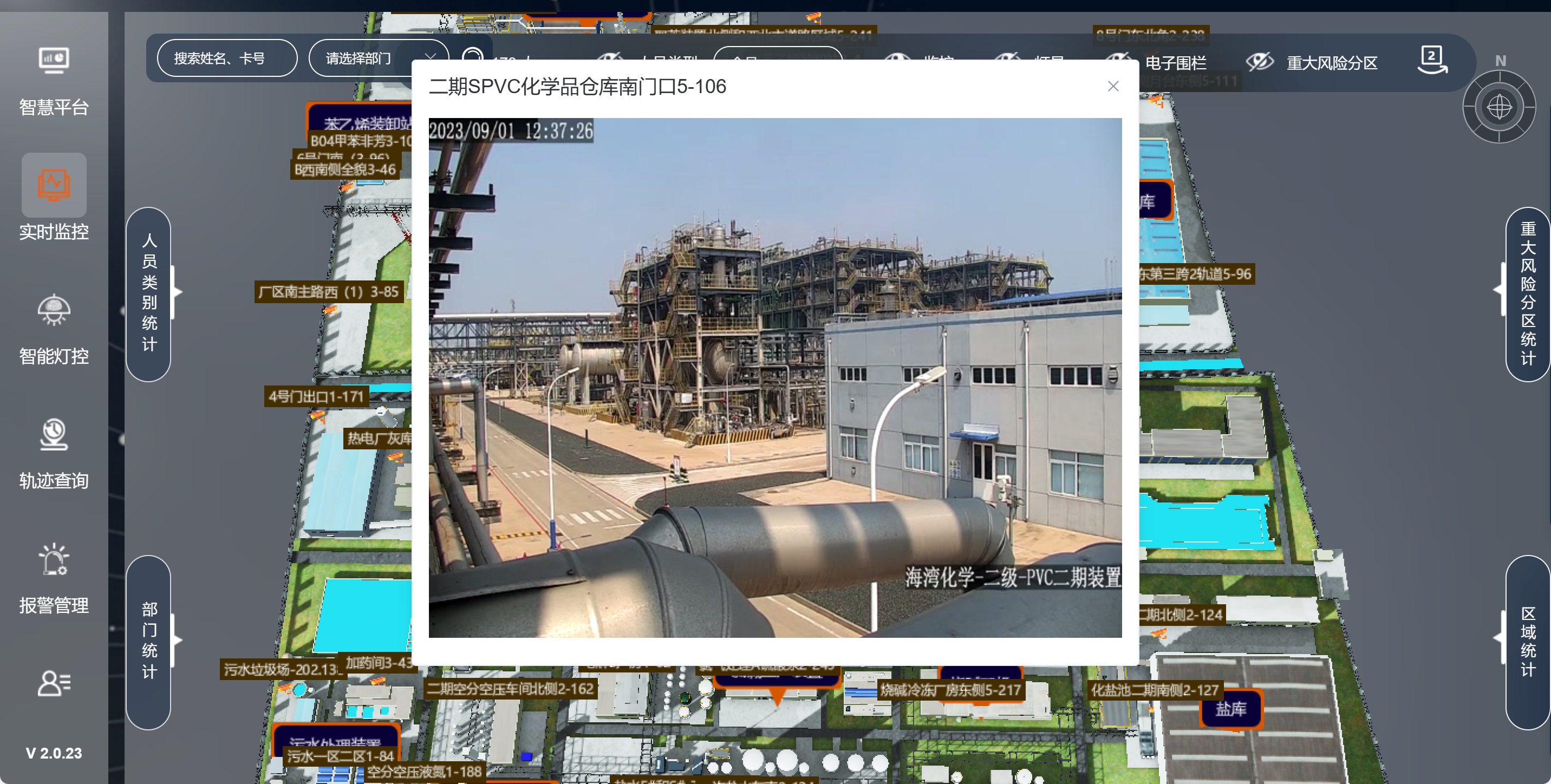 針對(duì)煤化工廠區(qū)人車混行、盲區(qū)多的問(wèn)題,系統(tǒng)通過(guò)實(shí)時(shí)軌跡與距離監(jiān)測(cè),當(dāng)人員與車輛、車輛與車輛接近安全閾值時(shí),同步向現(xiàn)場(chǎng)與管理平臺(tái)發(fā)出預(yù)警,提醒避讓。同時(shí)可對(duì)人員長(zhǎng)時(shí)間靜止、異常聚集、擅自脫崗、車輛違規(guī)??俊⒎磸?fù)繞行等行為自動(dòng)識(shí)別報(bào)警,將被動(dòng)處置轉(zhuǎn)為主動(dòng)預(yù)警。