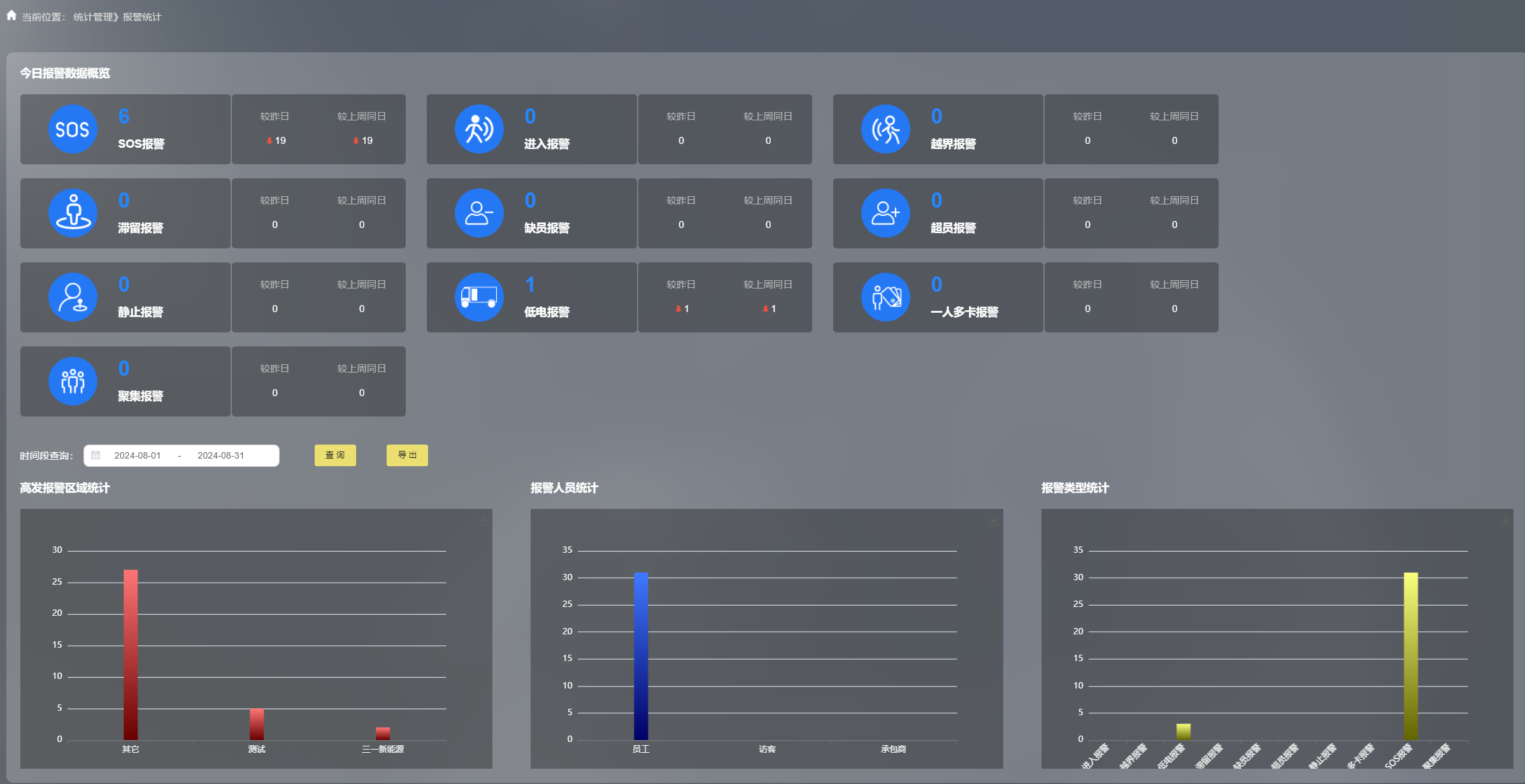 系統提供全面的數據報表和可視化工具,以表格、熱力圖等形式展示各區域人員分布及報警信息等關鍵數據。