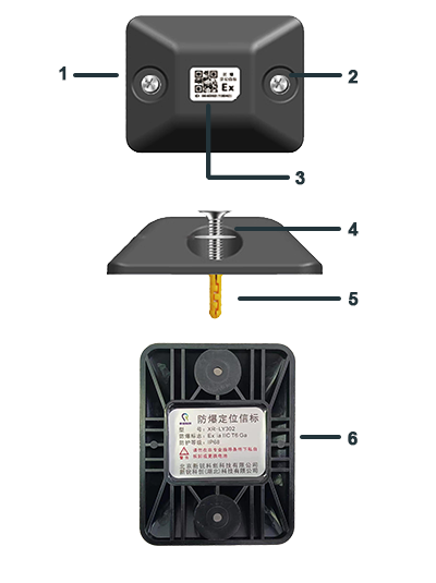 1. 定位孔 2.定位孔 3.編碼標(biāo)簽 4.自攻螺絲 5.膨脹管 6.參數(shù)標(biāo)簽